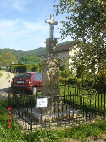 Jedná se o nevysoký kříž z malvínského pískovce s nízkým profilovým soklem. Sokl se nad horní okapovou římsou zužuje, a v této horní části je umístěn drobný mramorový kříž s litinovým Kristem.
