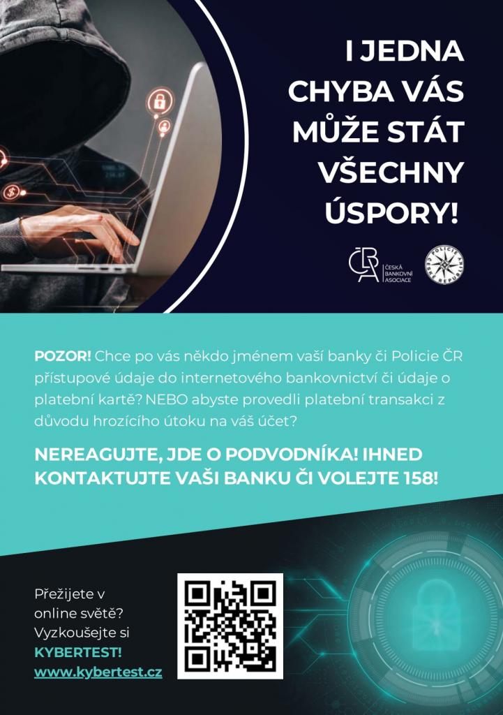 POZOR! Chce po vás někdo jménem vaší banky či Policie ČR přístupové údaje do internetového bankovnictví či údaje o platební kartě? NEBO abyste provedli platební transakci z důvodu hrozícího útoku na váš účet?