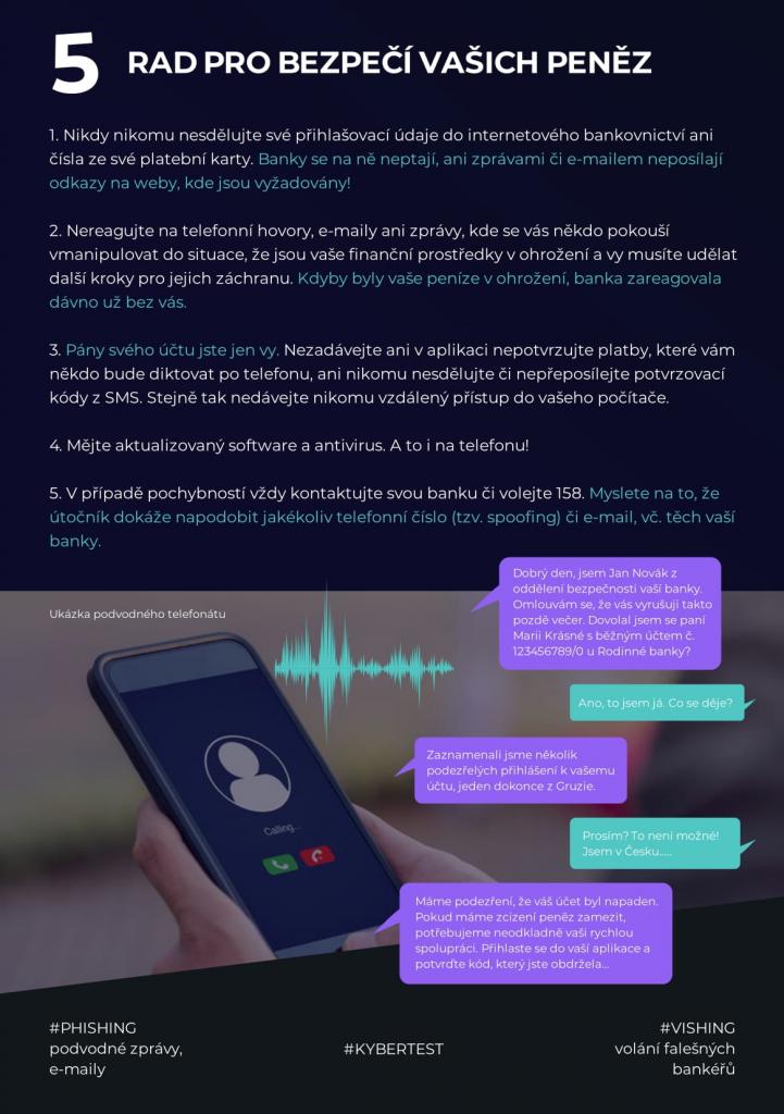 5. V případě pochybností vždy kontaktujte svou banku či volejte 158. Myslete na to, že útočník dokáže napodobit jakékoliv telefonní číslo (tzv. spoofing) či e-mail, vč. těch vaší banky.