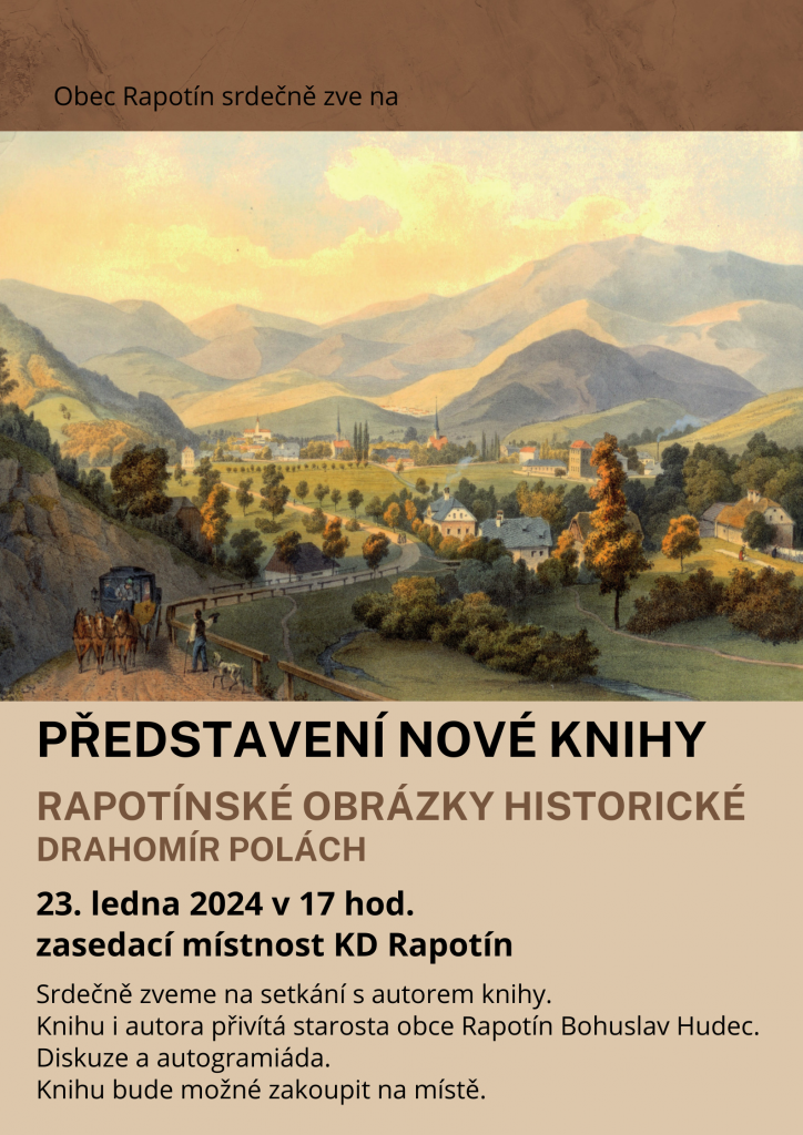 Knihu i autora přivítá starosta obce Rapotín Bohuslav Hudec.